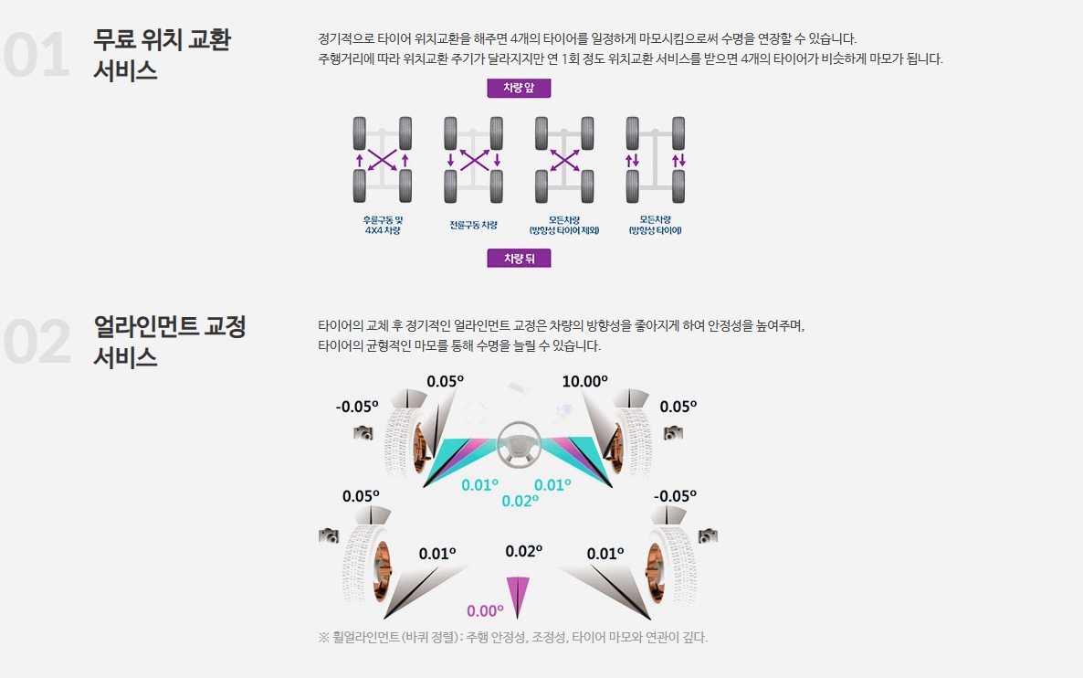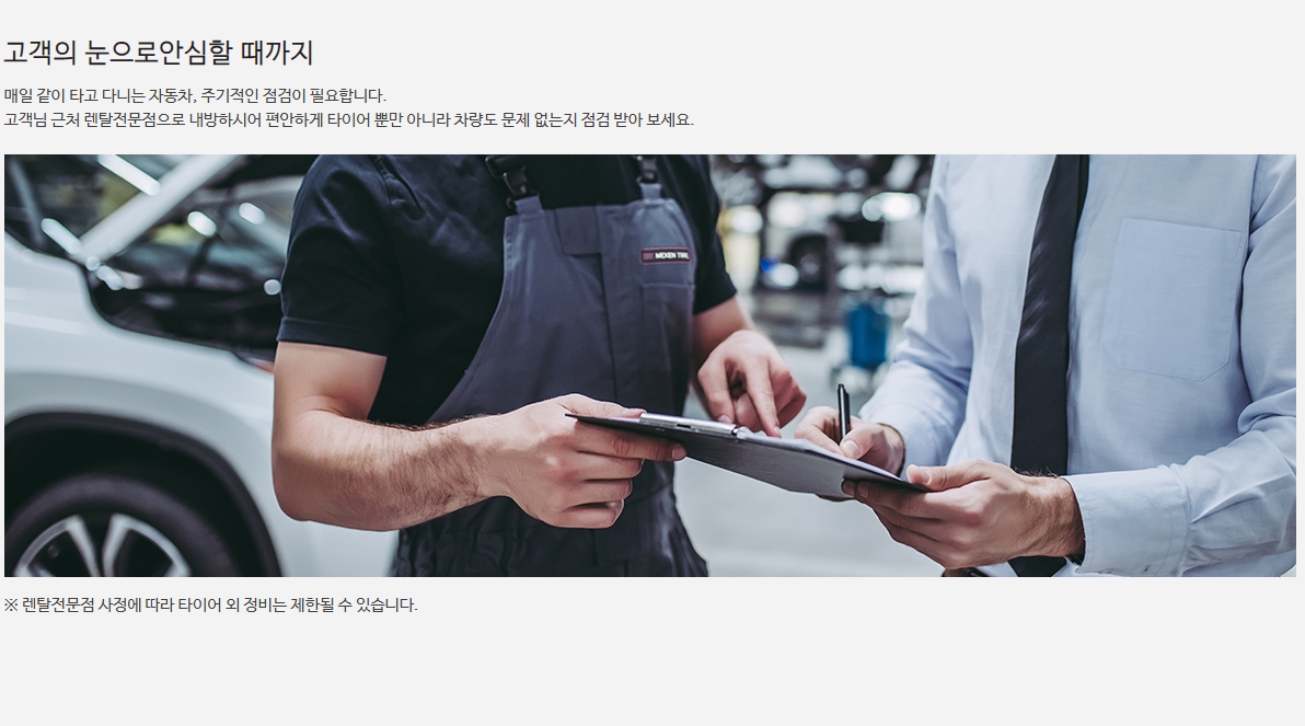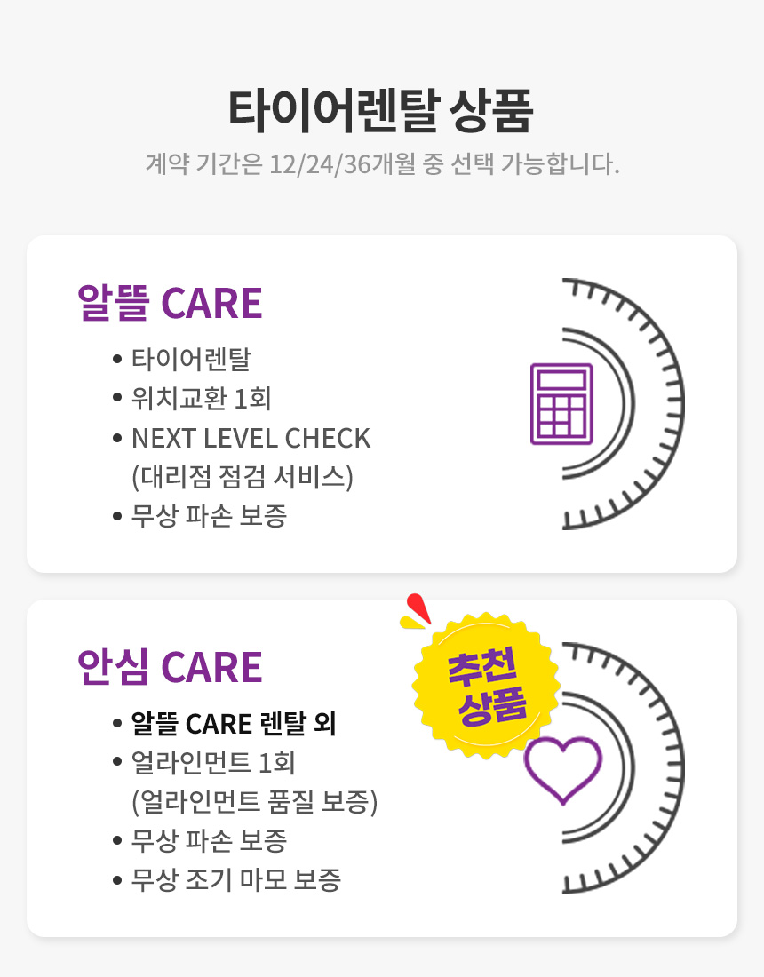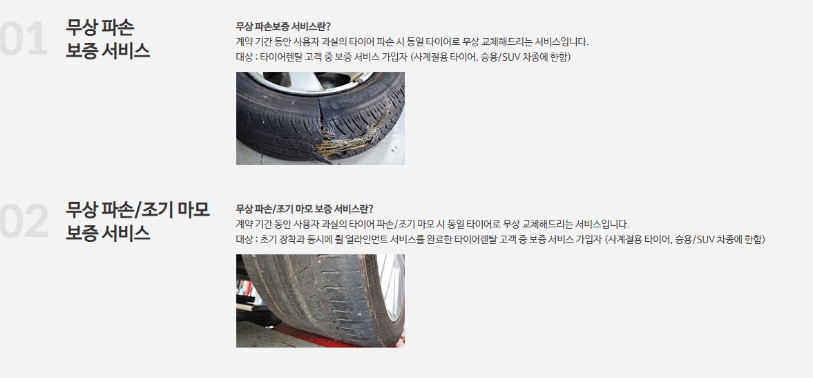 목돈 부담 없는 타이어 교체는 물론, 계약기간 동안 타이어가 파손되어도 걱정없는 타이어 교체 서비스입니다.